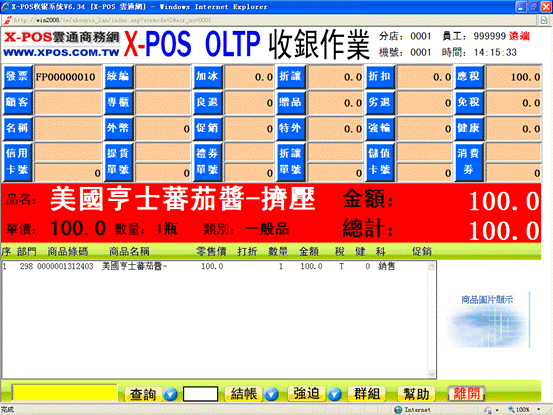 1-6、重新打開X-POS界面,再次輸入該商品。此時可見該商品的臨售價已變為100.0元。