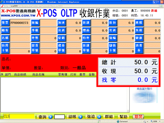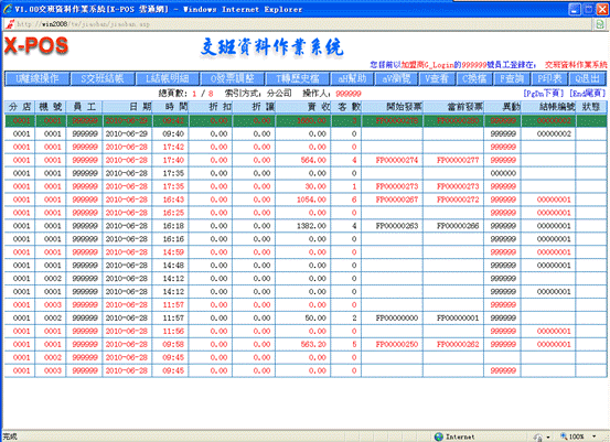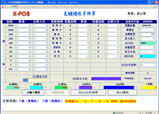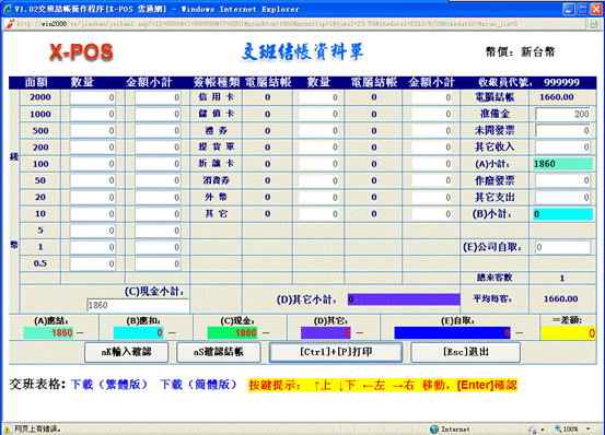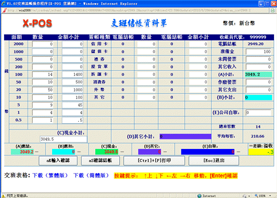 19-1、當員工在與顧客做完最后一筆結帳下班時需要進行交班結帳作業,此時只需在X-POS介面中輸入欄中輸入
