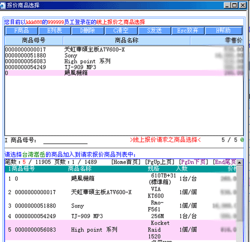 1.雙擊要請求報價的商品 2.完成後點擊發送