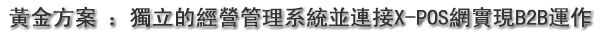 | 黃金套裝: | 創建您可獨立的經營管理系統並連接X-POS網實現B2B運作。 |