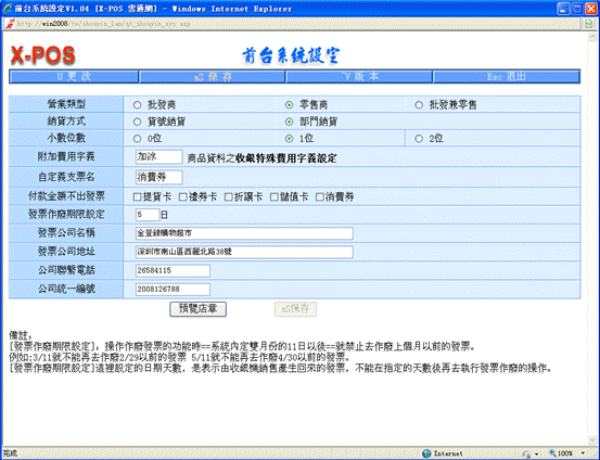 測試目的:完善收銀機前台系統設定功能方便用戶使用X-POS收銀機