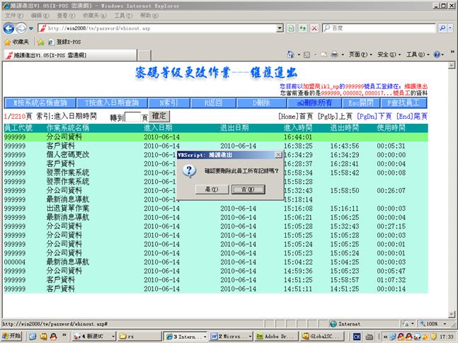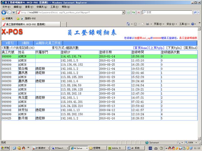 )(選擇要刪除的記錄如:員工代號000015,登錄IP