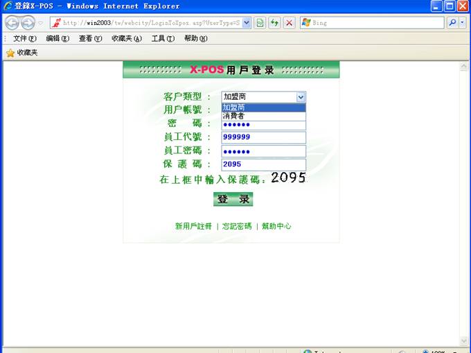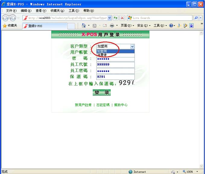 1-2-5.選擇加盟商登陸,寫入正確的用戶賬號和密碼,及保證碼,點