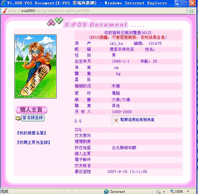 3-2-2.填好資料按“確定”, 登陸成功後進入 用戶詳細資訊頁面,如下圖: