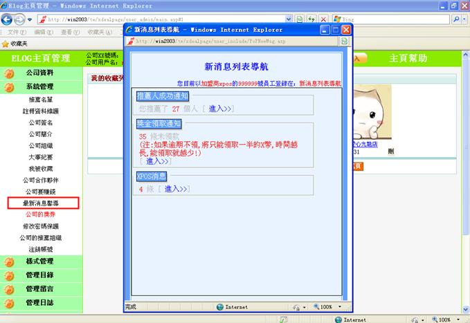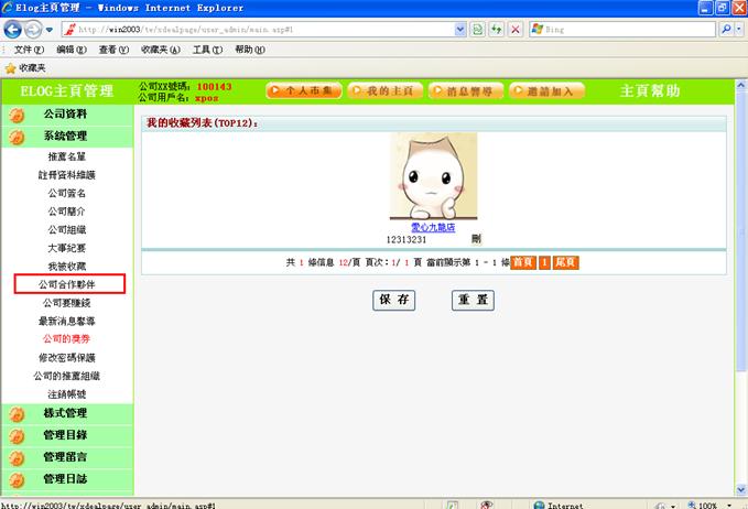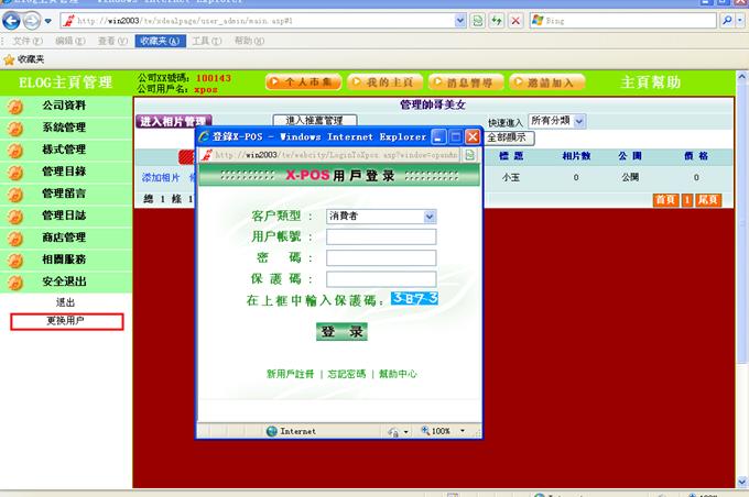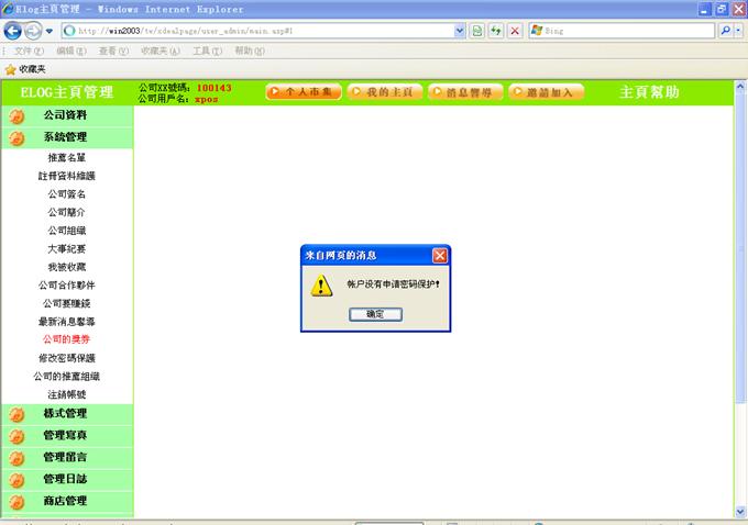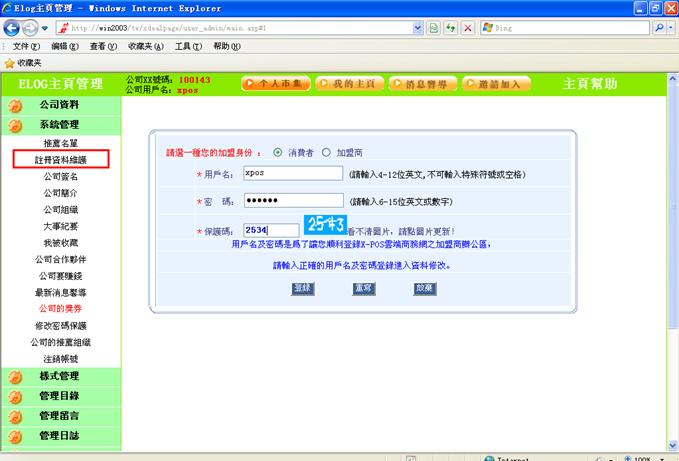 1-1-3.如果您選擇登陸類型爲“加盟商”,填入自己的用戶名、密碼以及保護碼,就可以直接進入ELOG主頁管理=>