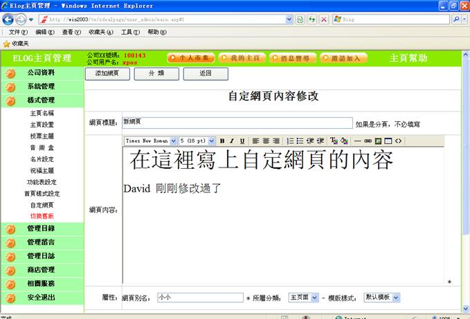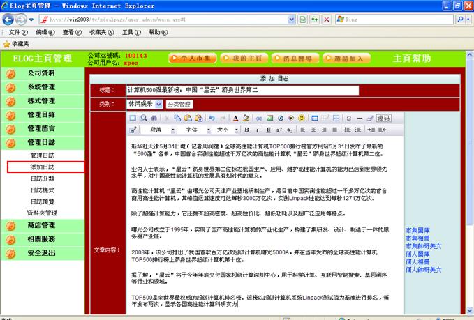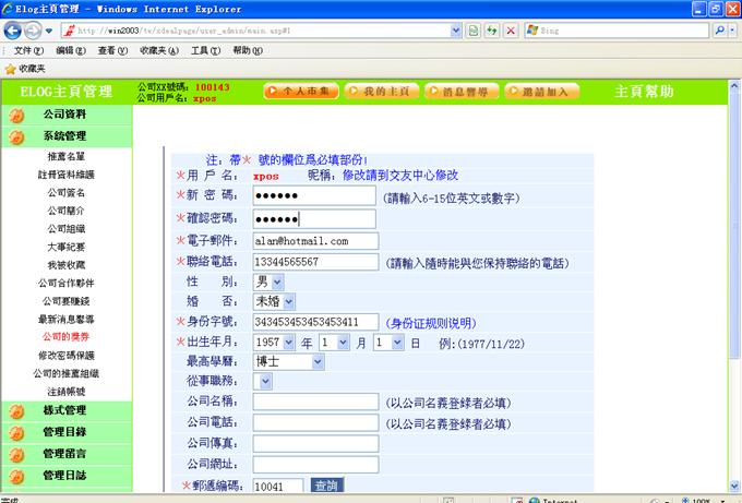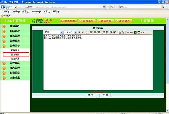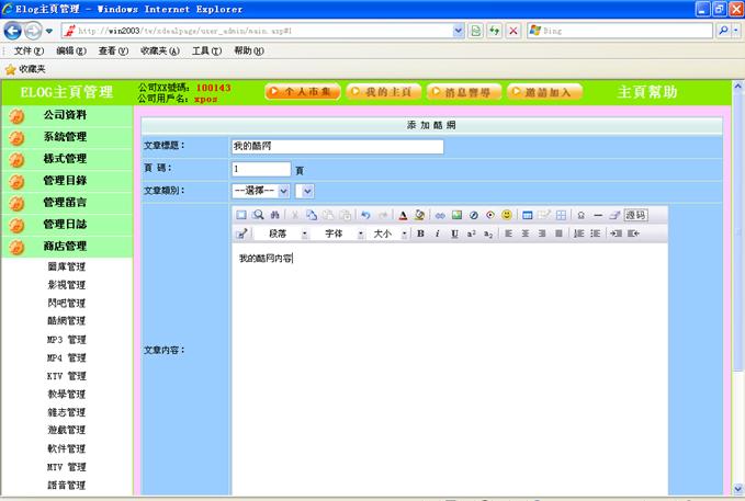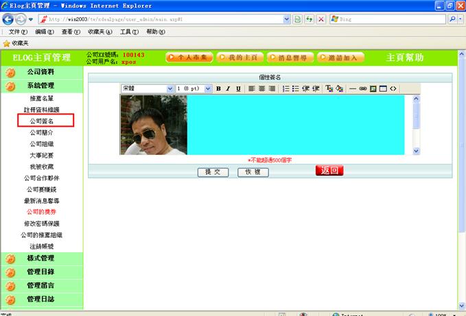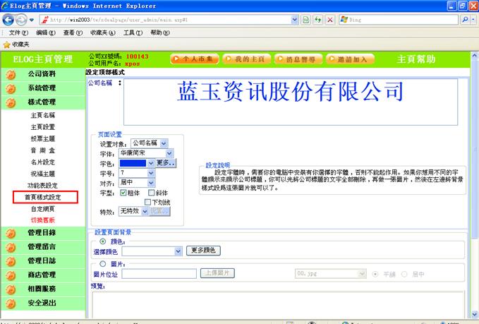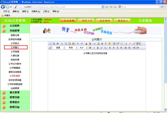 ,進入管理公司主頁的主頁面,如果您已登陸,將進入公司主頁管理頁面