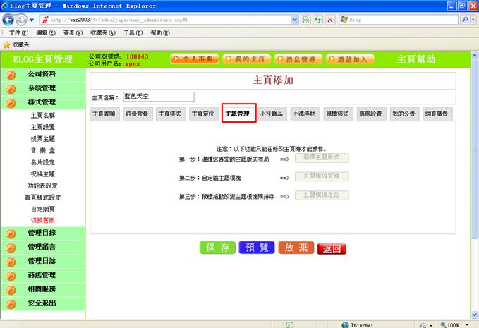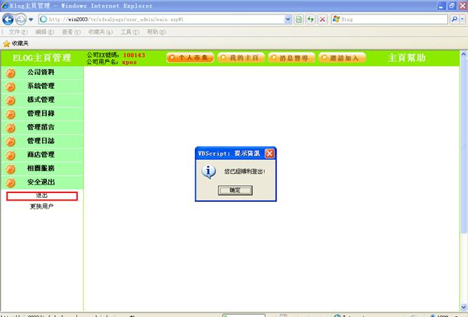 10-1-1.如果您已經完成主頁的相關設置,要退出主頁管理時可以點先退出,點選後將會出現對話框,說明您已經完全退出公司主頁管理頁面了.,並跳轉到X_POS首頁.
