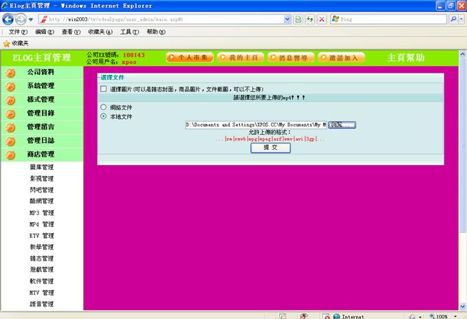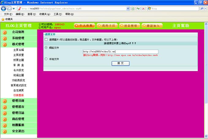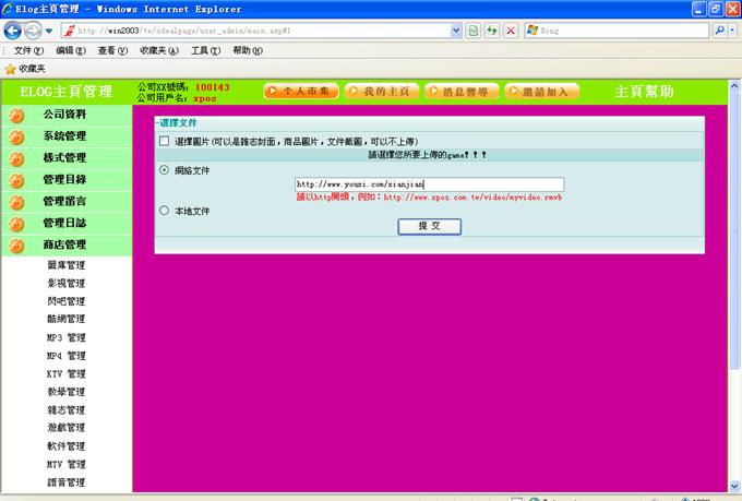8-14-2.添加完資料後,進入上傳檔頁面, 上傳的檔可以選擇本地檔或網絡檔,填寫正確的地址就可以了,