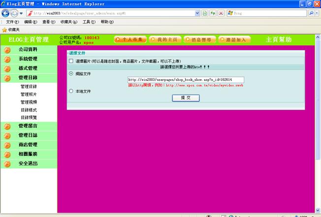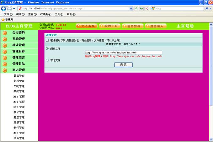 8-11-3.填寫完成後,點提交,在如下頁面輸入檔地址或是網絡地址