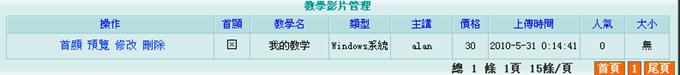 9-2-1.交點選教學影片,即進入教學影片相關服務,您上傳的教學影片,都將在這裡.您可以查看影片.