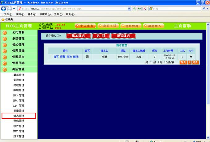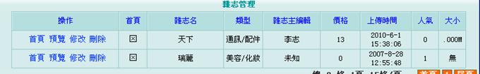 8-9-1.如果您已經添加有雜誌,可以點擊“修改”,“刪除”,“首顯”進行相關的操作。