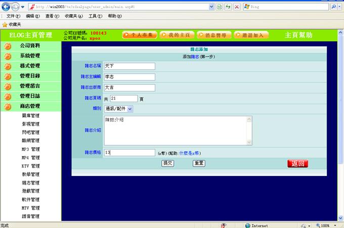 8-9-2.如果您要添加雜誌,請按“添加雜誌”,把雜誌的資料、路徑以及您想要都多少X幣填好,然後按“提交”就完成了。如果覺得填寫的資料不滿意,可以按“重置”再重新填寫