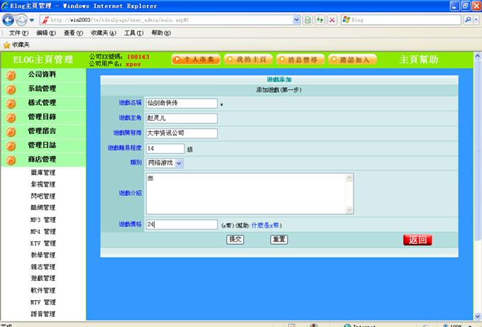 8-10-2.添加遊戲,請按“添加遊戲”,把遊戲的資料以及您想要都多少X幣填好,然後按“提交”就完成了。如果覺得填寫的資料不滿意,可以按“重置”再重新填寫。