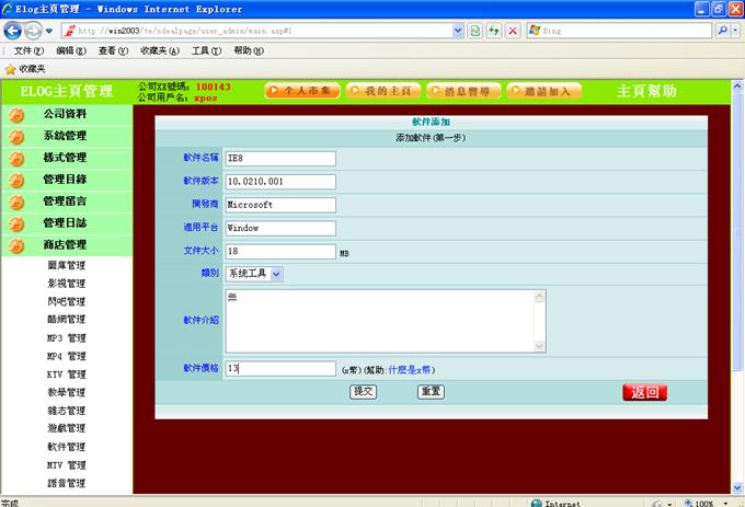 可以設置修改軟件的資訊.軟件的添加與修改都與上面的操作步驟大同小異,不過上傳軟件的格式必須為 RAR、ZIP、EXE 三種類型