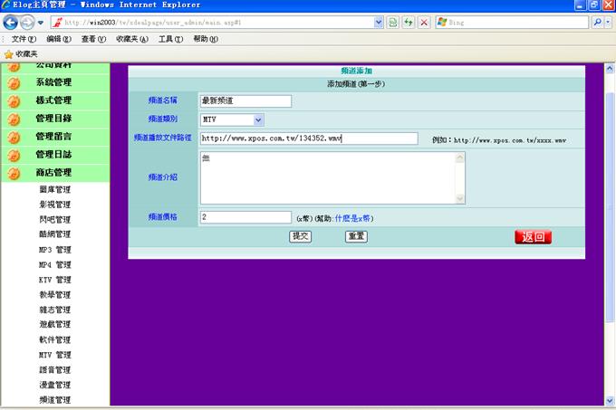 8-15-2.填寫完頻道的詳細資訊後,點提交,提示添加成功.
