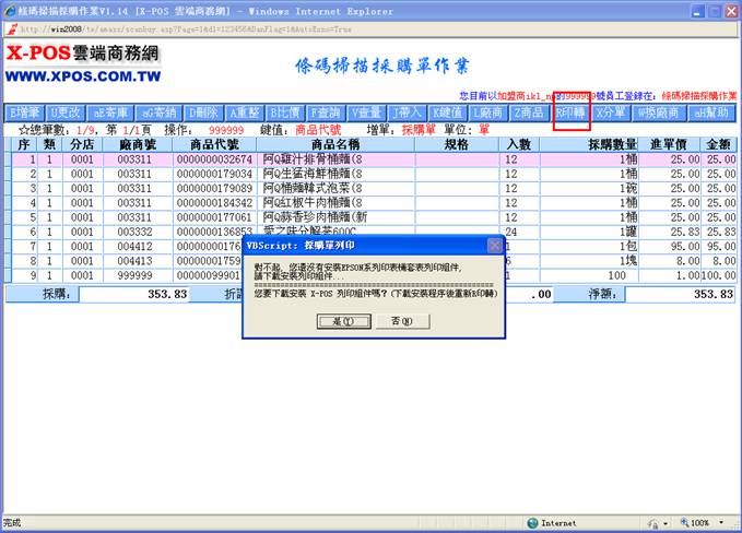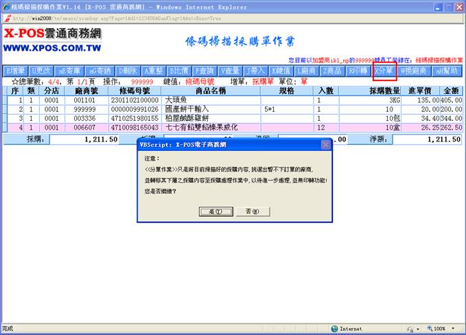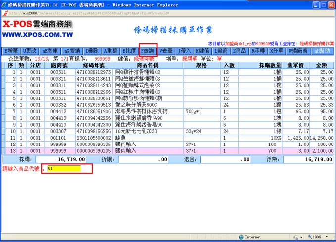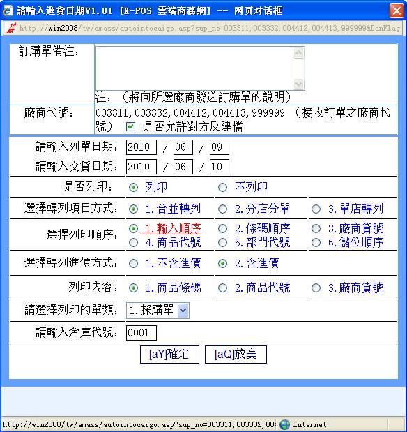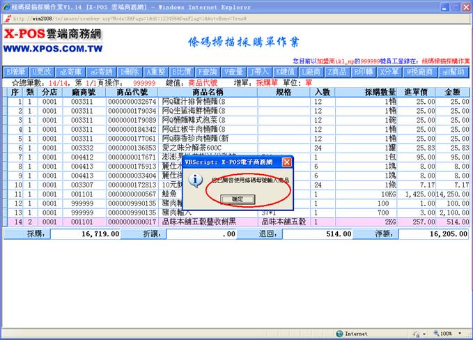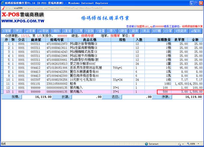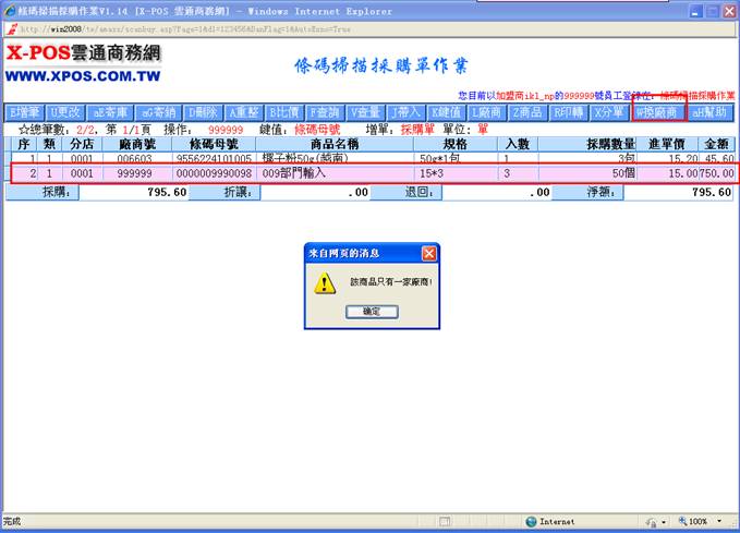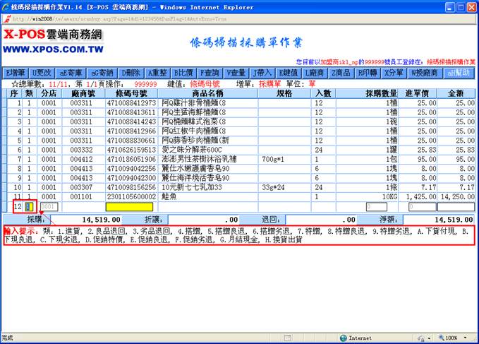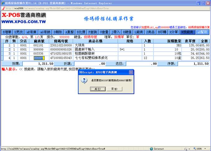 鍵關閉輸入狀態的話,系統就會認爲您是關閉整個採購資料錄入,所以就會關閉整個窗口返回到採購單作業的主頁面,也就是整個採購操作就會到此結束。