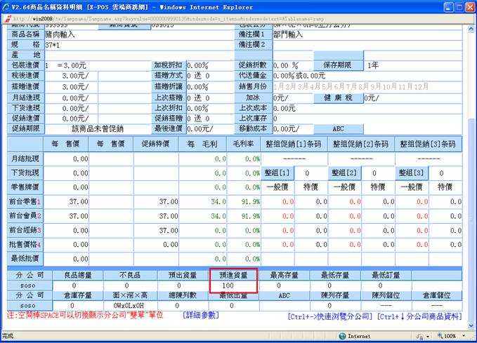 鍵,顯示該商品名稱明細資料。具體操作可查看"Z商品"的幫助。