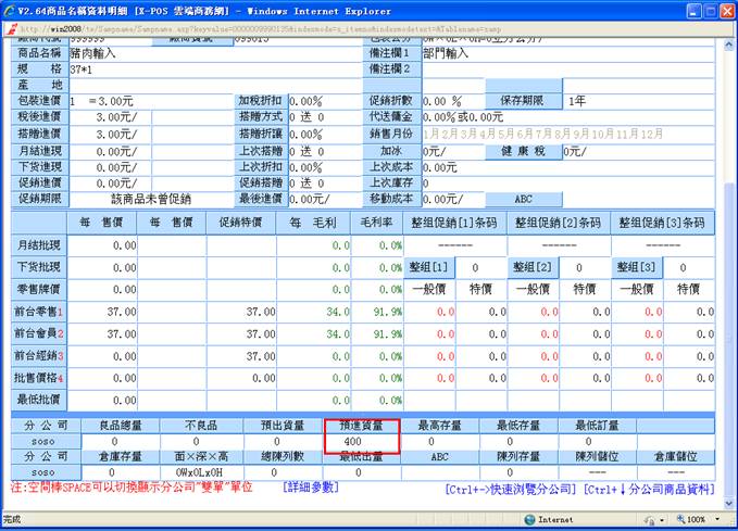 鍵,查看商品名稱資料的預進貨量為:100+300=400;