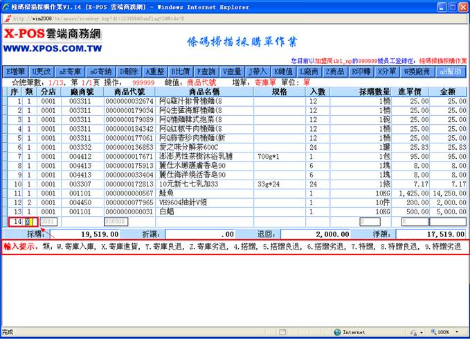 的幫助。此輸入方式利用條碼掃描器作硬體掃描取得條碼母號,可保證輸入快捷並不發生人為輸入代號錯誤的情況,一般都是使用在超市零售業的進貨,或是五金、文具、飾品等等在包裝上已經大量使用條碼的商品業者最是好用。