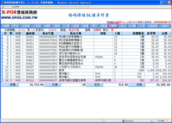 L廠商: 選擇您的進退貨的某筆記錄,單擊