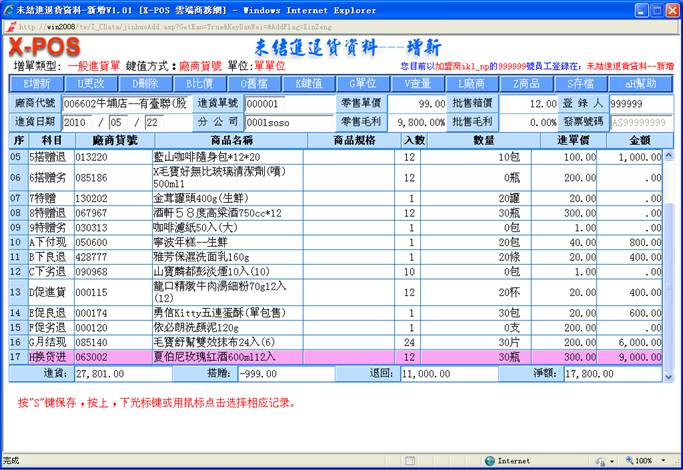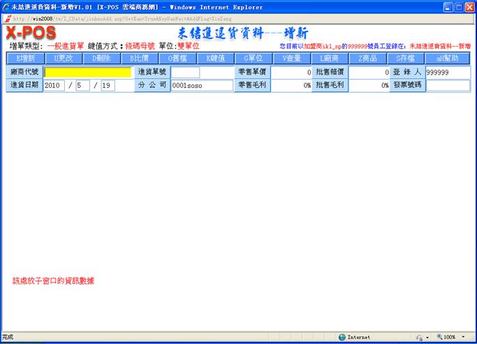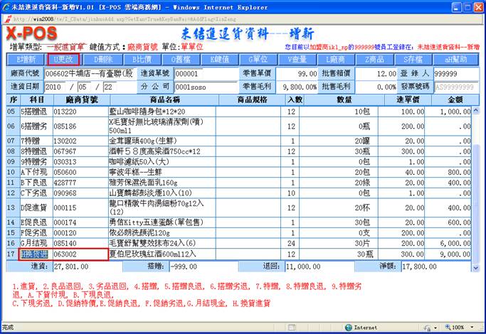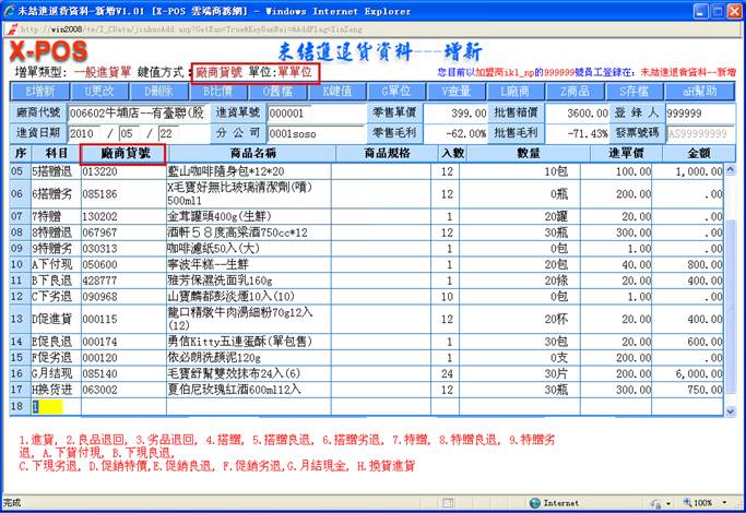 二.進退貨單輸入測試內容索引: