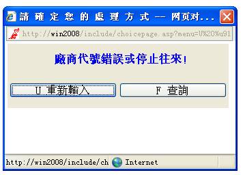 即返回到廠商代號輸入框,重新輸入廠商代號;若您選擇