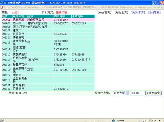 鍵翻頁來查詢,也可以在條件查詢中輸入您知道的廠商內容來查詢,按