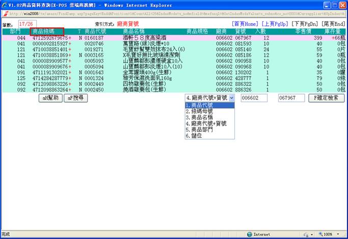 18-I-1-17-A-1. 點擊1.商品代號(或使用快捷鍵
