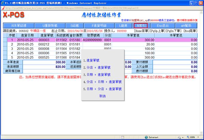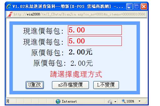 彈出進退貨單選擇作業畫面: