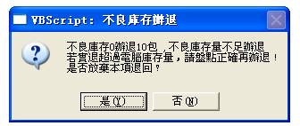 4-C -2:輸入值不符合各條件,即庫中沒有這種商品時,將彈出提示,例如輸入000013,後按