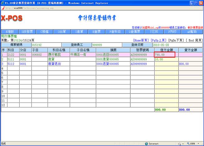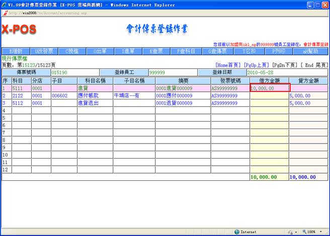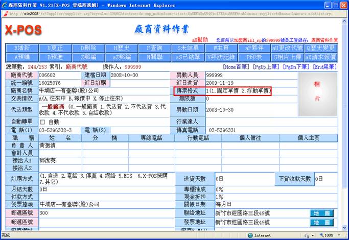 鍵後,若輸入代號不足六位時,系統會在前面自動補零足6位,若您輸入的廠商代號存在資料並且交易情況為[A.往來中]時,系統自動讀取出與該廠商代號相對應之廠商名稱: