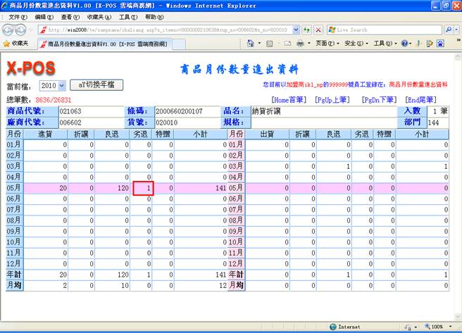 備註3:進貨單一張增加進貨單次數紀錄一次、商品進貨一筆增加商品進貨次數紀錄一次、搭贈的進出都不予紀錄次數、進貨退回也不予紀錄次數。利用進貨總金額與進貨總次數來換算出每張進貨單的平均進貨金額。利用商品進貨數量與商品進貨次數來換算出商品每個月或每次的平均進貨數量與金額,對於可以正確提供做採購數量判斷的參考相當有利。