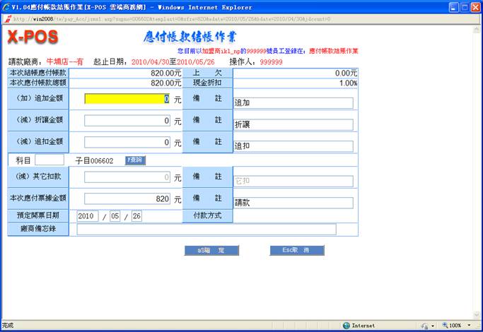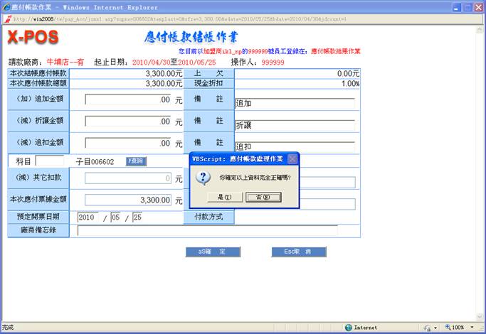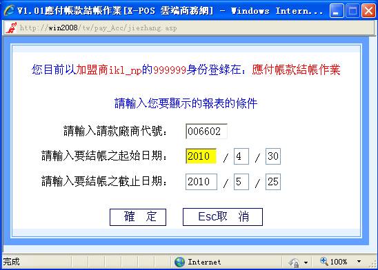 鍵跳過,本項也可以由操作人員自行輸入指定的日期,但是系統不允許輸入超越登錄當天的系統日期。