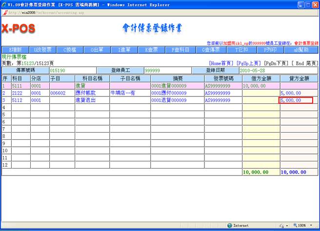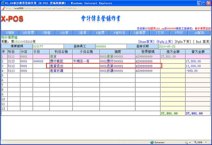會計科目資料增加了一筆科目:2122;分店:0001;子目:006602