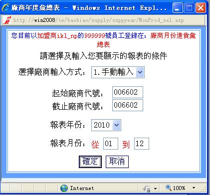 18-I-2-2:彈出框口,選擇或輸入您要顯示的報表條件: