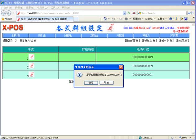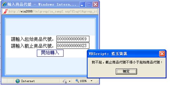 如輸入分公司代號:005, 不存在,則彈出提示框,單擊