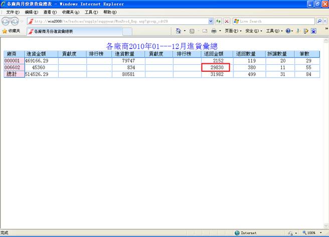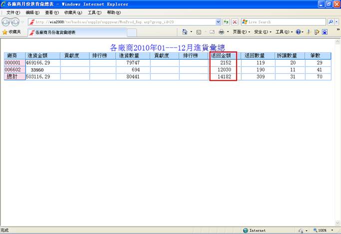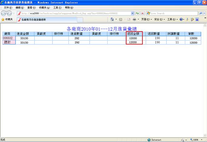 廠商月份進貨彙總,未增加良品退回之前,退回金額為:12030;增加良品退回之後,退回金額為:12030+17800=29830