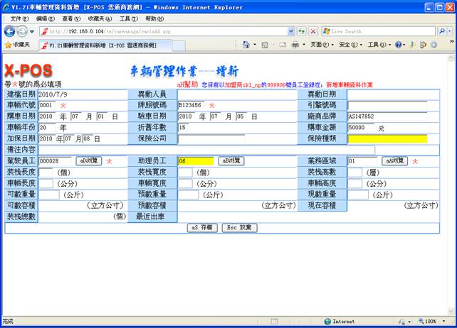 1-14.這時,可以到基本資料作業車輛中新增,如圖: