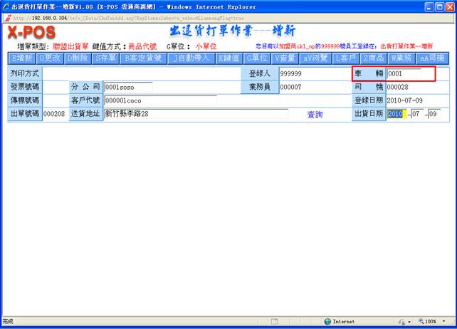 )進入聯盟出貨單作業,如圖: