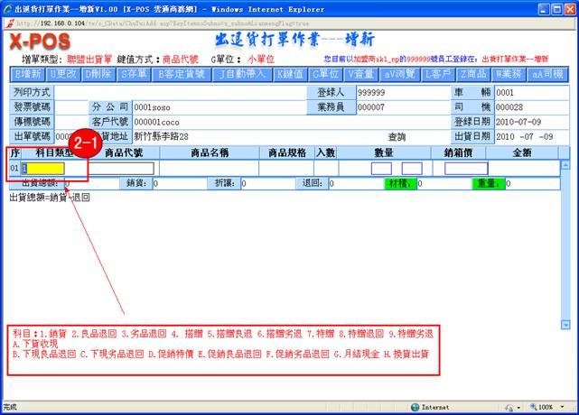 5-2-a-2:出退貨作業選擇[1.銷貨]