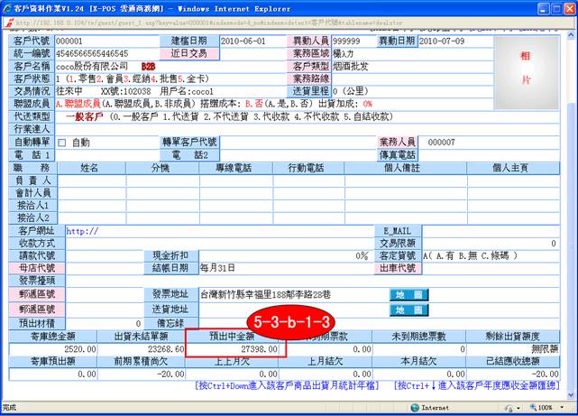 5-3-b.客戶代號資料未結單預備出貨總額,因為已經有預備出貨了,相對的預備出貨金額應該增加。(DealStor客戶資料檔)