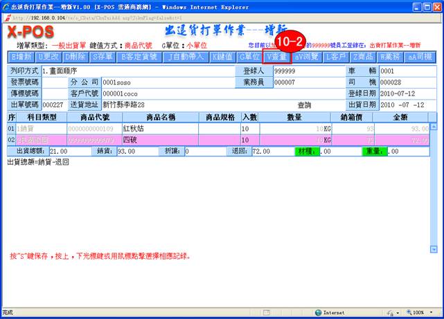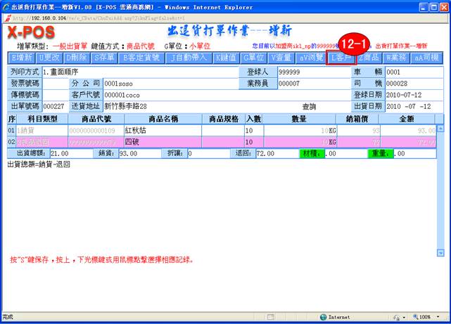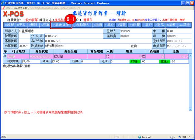 5-1. 當您增新完出退貨單資料後,這時您將這些資料保存起來,單擊