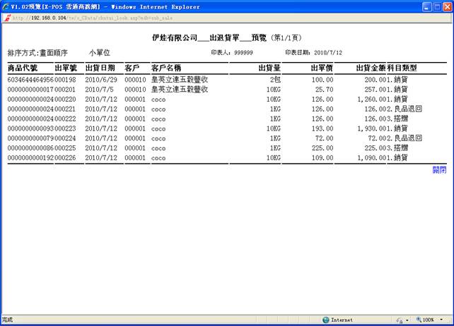 9-2.商品出貨價格:系統採取大單位進價的記錄方式,也就是利用每一組最大單位之出貨價格來換算出小單位的批價。整套系統記錄使用大單位的進出價格,能配合社會上之交易習慣都以箱、打、籮、斤等之報價方式,而通常這些大單位的包裝都是3的倍數較多,例如一箱為24罐、一打為12雙、一斤為16兩等等,而成交價格又非3的倍數,如果是登記小單位的批價又採用小數點的方式登記批價,當在出貨作業中輸入資料時將無法很準確的運作,尤其進出貨的數量越大時精準度將越差。X-POS系統是採用會計基礎作設計的,因此在金額的控管上更是不能有一絲一毫的誤差!而系統採用大單位批價的運算方式才可以確保金額完全無誤。