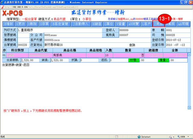 13-1. 利用出貨單上的商品代號,可以快速查看該商品的資料內容明細。單擊