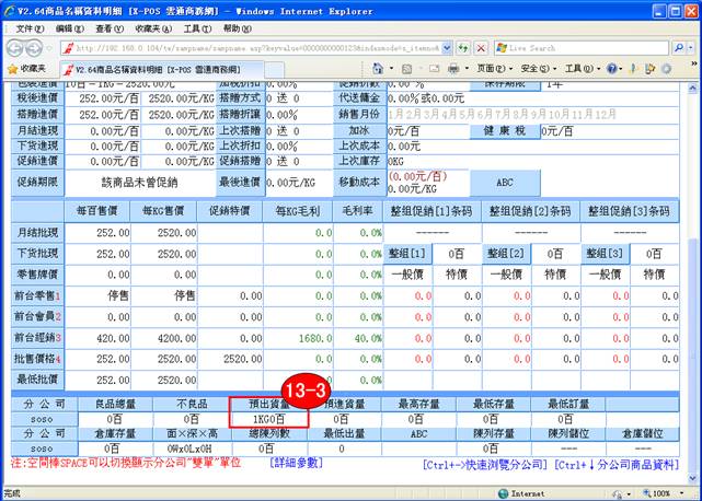 13-3. S存檔之後,商品名稱資料中,預出貨量為:1KG0百;