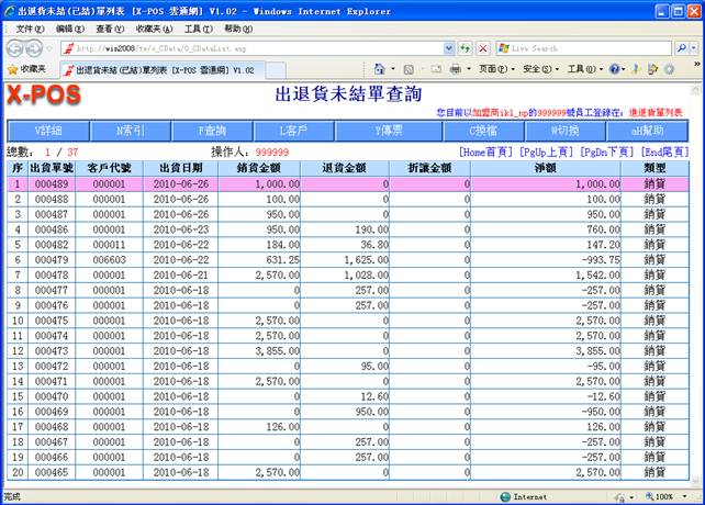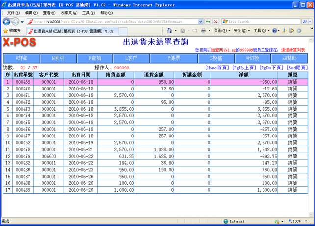 測試目的:完善出退貨單列表作業使客戶能夠放心使用
