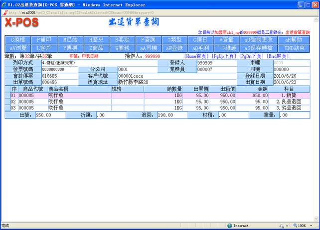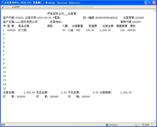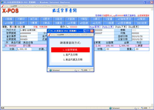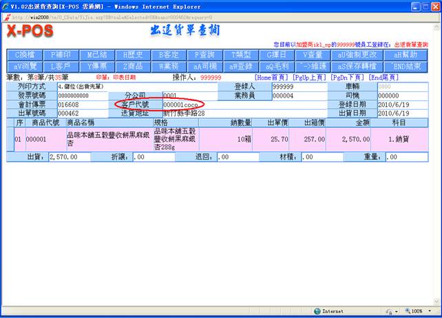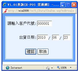 2-7-3-2.若輸入客戶代號:000001,出貨日期:2010/06/23,如圖: