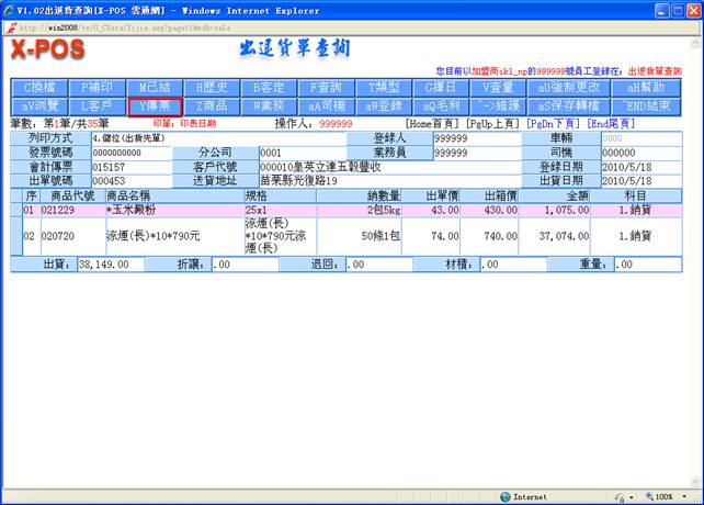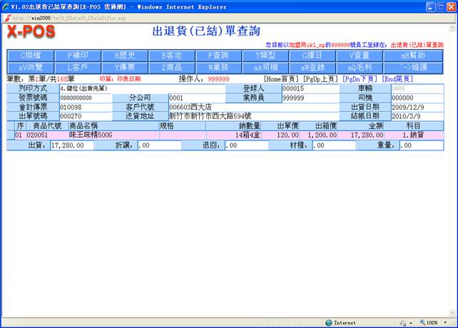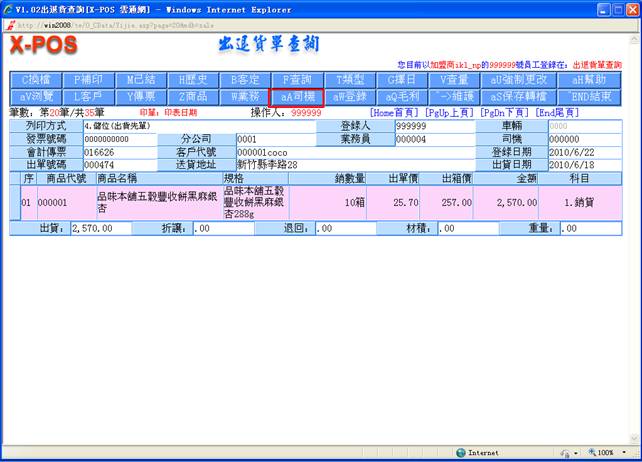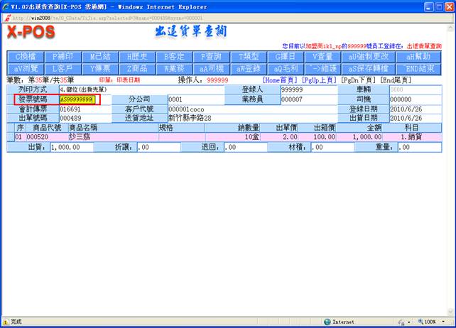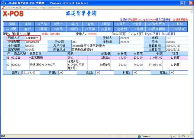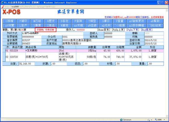 2-3-1. 補印出貨單是方便必須對指定的出貨單作補印操作,但是為防止員工利用此補印單作真收款之弊端,因此在補印單的出貨日期後面特別加印『*』標誌以玆區別。單擊