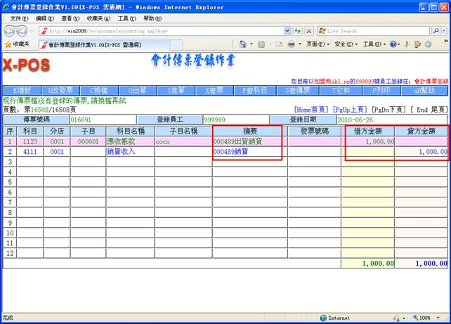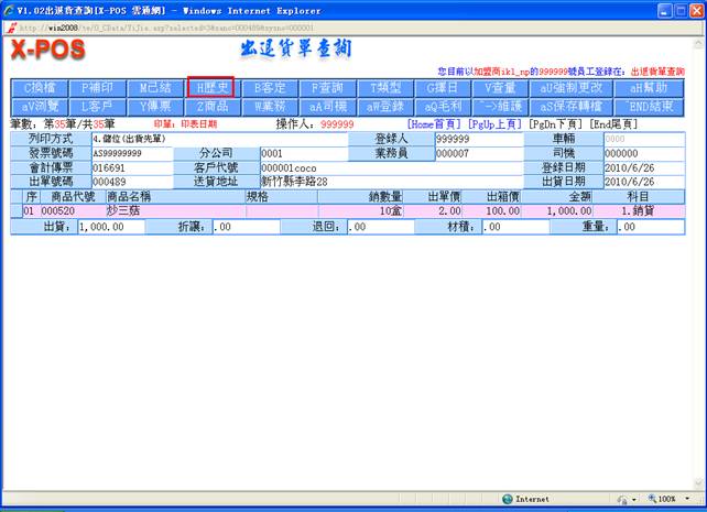,輸入客戶代號:000001,出貨日期:2010/06/23,如圖: