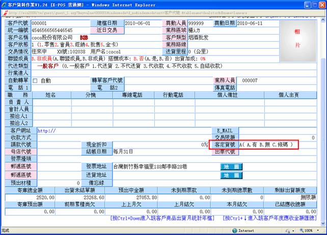 2-13-2. 利用出貨單上的客戶代號,可以快速查看該客戶的資料內容明細。